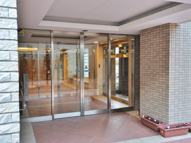 千里中央公園の緑を身近に感じられる住環境が魅力。エントランスはオートロック採用で防犯面に配慮され、宅配ボックスも備わるため不在時の荷物受け取りがスムーズです。住戸前に専用ポーチを設けた設計で、玄関まわりの独立性が高いのもポイント。駐車場出入口にはリングシャッターが設置されており、車の防犯面にもひと工夫。管理は全部委託・日勤体制で共用部の維持が期待でき、来客用駐車場がある点も使い勝手の良さにつながります。