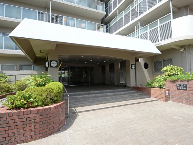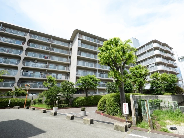 高台立地で、開放感と眺望が期待できる住まい。南向き中心の配置で日当たりを取り込みやすく、風通しも確保しやすいのがポイントです。周辺は落ち着いた住宅地で、生活利便施設と自然のバランスも良好。管理は全部委託・日勤体制で、日々の安心感につながります。