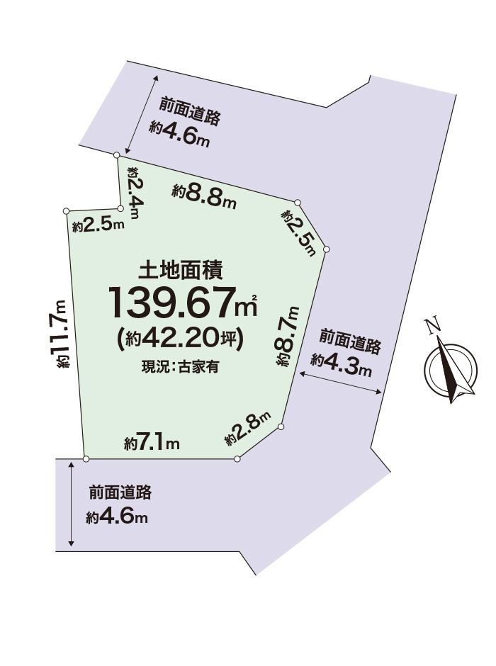 南東4.3m幅、南西4.5m幅、北東4.6m幅