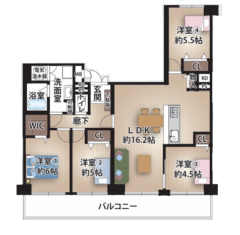 • エアコン1台付き(洋室4)